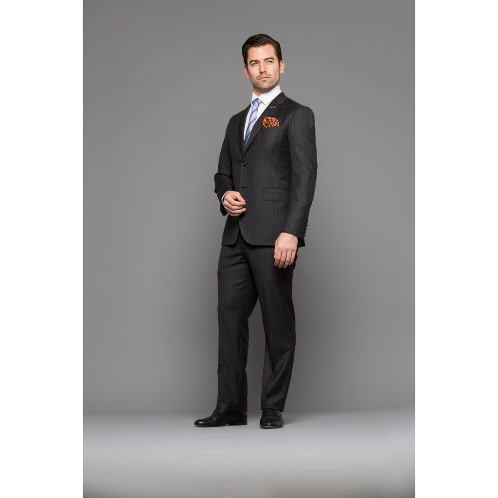 Martin Greenfield Chelsea Charcoal Pinstripe 2 Piece Suit is a staple for any discerning wardrobe. Carefully selected 100% Barberis Super 120's fabric, sourced from one of the finest mills in Italy. The Chelsea suit is constructed with a modern and contemporary fit. The perfect suit for travel and the boardroom.