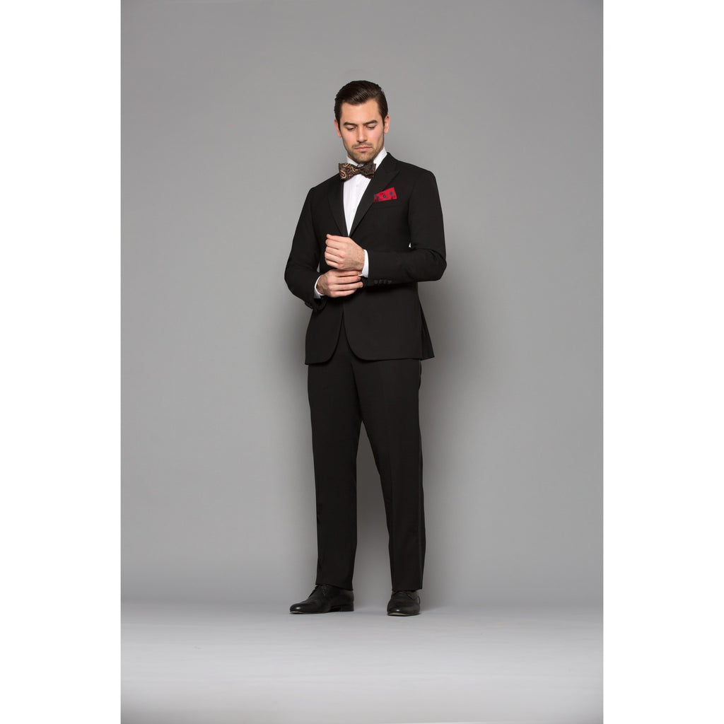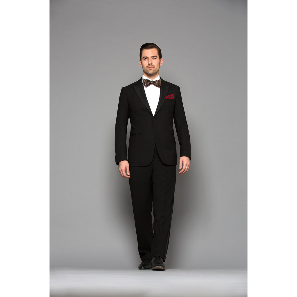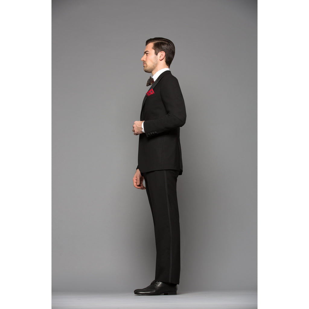 Martin Greenfield Chelsea Peak Lapel Tuxedo is hand crafted in Angelico Italian Pique Super 120's. Perfect for any black tie event or wedding.